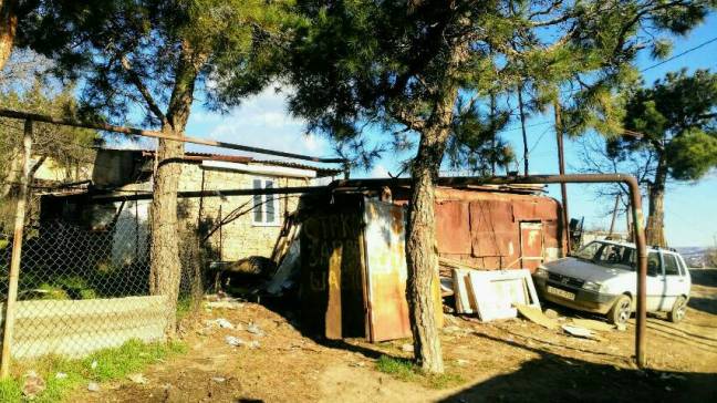 Durch die Blüten des wilden Kirschpflaumenstrauchs kann man das Hochplateau des Lissisees erahnen. 15 Gehminuten von unserer Wohnung entfernt besuche ich gerne dieses sich selbst überlassene Hügelgelände. Ein bisschen höher bricht der Fels durch und schaut man zurück, sieht es so aus: Weitsicht auf die Quartiere Saburtalo und weiter hinten, Vake