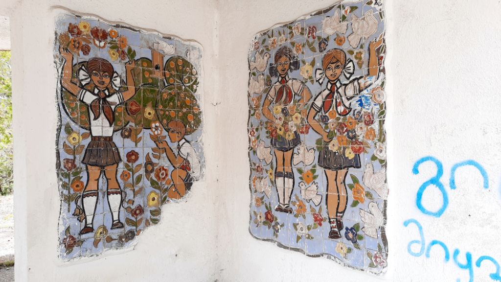 Frohe Ostern! Das Bild zeigt zwei Sowjetmosaike unweit von Tbilisi, dem ins Vergessen geratenen Kurort Tskhvarichamia.