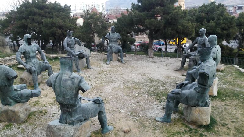 Alles ist rund um den Festungshügel angeordnet. Unter dem Namen Tontio taucht er im 7. Jh. in georgischen Urkunden erstmals auf; archäologische Forschungen ergaben, dass sich darunter Überreste einer noch älteren Befestigungsanlage, datiert 3. bis 2. Jahrhundert v. Chr., befinden sollen. Die Burgruine wurde kürzlich renoviert, Arbeiten am Hügel ausserhalb der Festungsmauern sind immer noch im Gange. Als ich die Bagger sah, bekam ich Angst, dass sie die Skulptur, die mir so gefällt, eingewalzt hätten