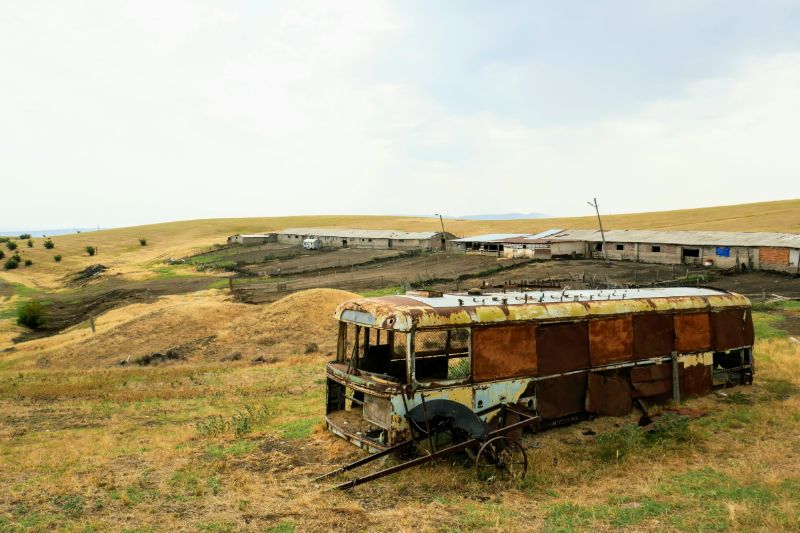 Auch in der Hügelkette nördlich des Sees klingen frühere Zeiten an. Die Ställe einer ehemaligen Kolchose sind leer, riechen jedoch sehr nach Tier. Weisse Fellfetzen, die sich hier und dort im Holz verfangen haben, lassen mich auf Schafe schliessen. Es ist Sommer, der oder die Besitzer sind bestimmt mit den Tieren unterwegs