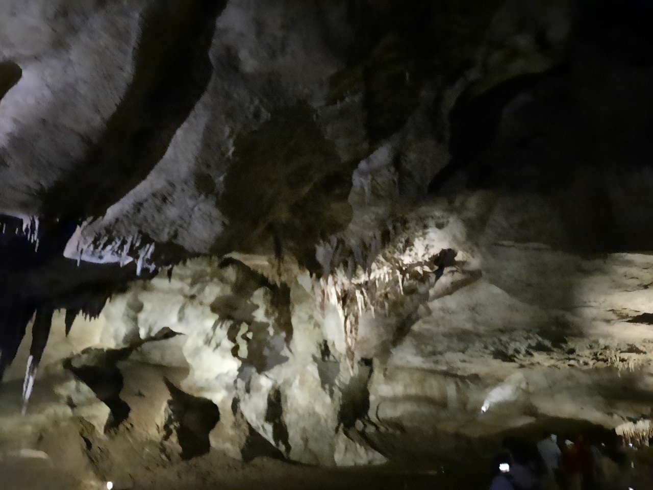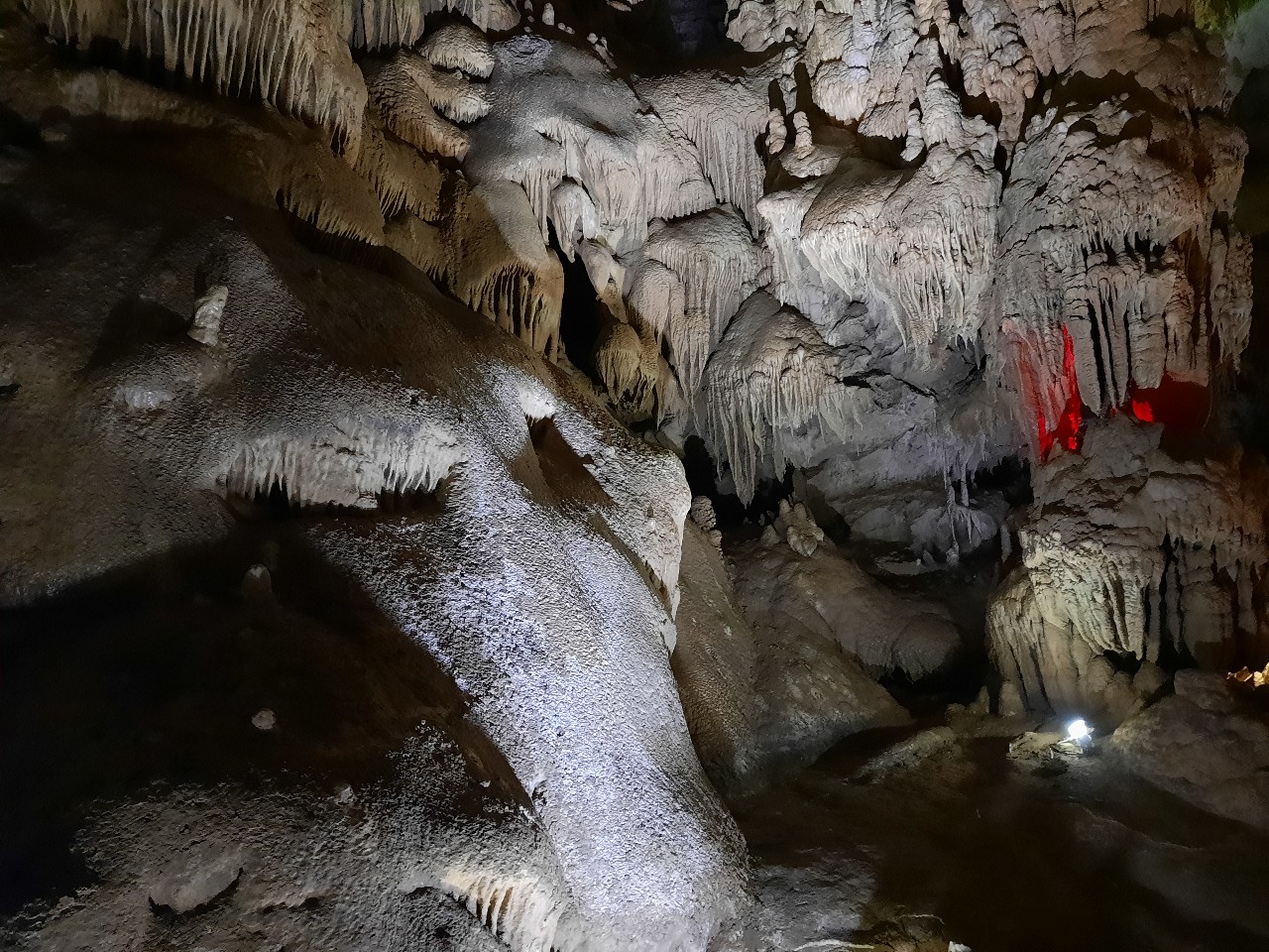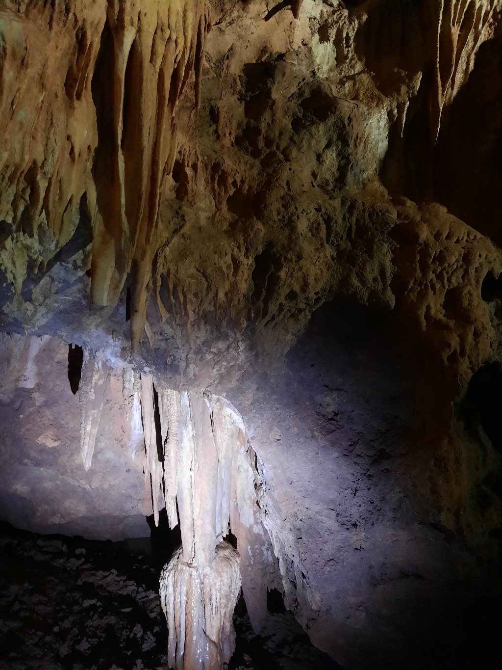 Prometheus Cave heisst die 11 km lange Tropfsteinhöhle, knapp 2 km davon sind für Besucher*innen zugänglich. Hoch ist sie! Kein Gefühl von Beklemmnis, manchmal fasst der Raum 30-40 m in die Höhe. Ich erlebte die Höhle nochmal ganz neu. Vor ca. fünf Jahren, als Wacho und ich das letzte Mal hier waren, inszenierte vielfarbiges Licht die Stalagmiten und Stalaktiten. Heute werden die sehr unterschiedlichen tatsächlichen Farben durch die Beleuchtung erfassbar und die Höhle beeindruckte mich in ihrem Reichtum an Formen, räumlicher Abwechslung und überraschenden Atmosphären.
