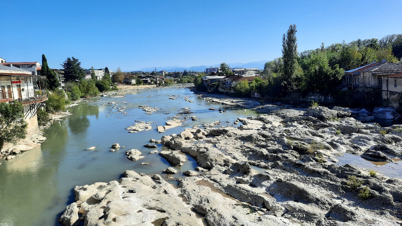 Region Imeretien, Westgeorgien. Wenn ich den Fluss Rioni jetzt sehe (siehe den Rioni im Juni-Blogbeitrag), dann kann ich mir nicht vorstellen, dass Jason und die Argonauten laut griechischer Mythologie von der Rioni Meeresmündung bei Poti mit ihrem Schiff bis Kutaisi fuhren. Der Fluss hat keinerlei Tiefe. Heute werde ich weiterfahren nach Nokalakevi, eine Variante, die für Wissenschaftler ebenfalls als möglicher Ort gilt, wo Jason die Familie der Medea getroffen haben soll.