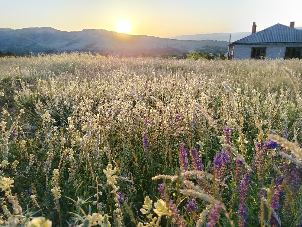 “Mit Öl, ist gut?” fragte mich Zizo beim Zubereiten. Auf dem Weg zum Sonntagsmarkt kreuzte ich sie. “Komm nachher vorbei”, rief sie mir zu. So habe ich mit vollen Taschen bei ihr Halt gemacht. Zwei Frauen stehen unter der Tür, beide mit weissem Haarschopf. Die eine im schwarzen Rock, und Zizo, die grössere, in kurzärmligem Hemd und Hose. Sie stellt mir Dodo vor: “Wir waren acht Geschwister, jetzt gibts nur noch uns zwei. Welche ist die Ältere?” „Keine Ahnung, ihr seht beide gut aus!” Die zwei haben eine kraftvolle Präsenz, Zizo ist vielleicht ein bisschen agiler. “Meine Schwester ist 83 und ich 80”, fährt sie fort, stellt geschnittene Tomaten und Gurken auf den Tisch. “Dodo hat 32 Jahre in Griechenland gearbeitet und ich 12.” Sie schneidet kleine Stücke Käse in den Brei. Die zwei Frauen leben in Tiflis, kommen jedoch im Sommer aufs Land, wo sie aufwuchsen. “Hast du Kinder?” fragt mich Dodo vom anderen Tischende. Bin ich unterwegs und weiss, dass ich die Leute mit grosser Sicherheit nicht mehr treffe, sag ich meist: “Ja, ein Mädchen und ein Knabe, 16 und 12 Jahre alt.” So gehe ich